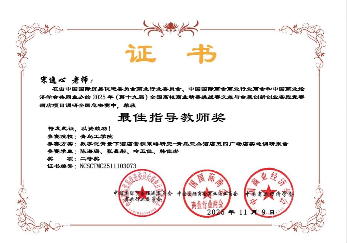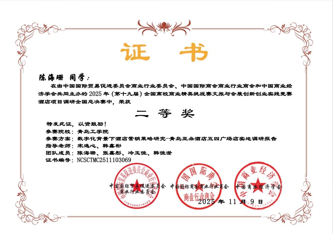 近日,第十九届全国高校商业精英挑战赛文旅与会展创新创业全国总决赛圆满落幕,公司古天乐代言太阳集团组织的3支员工团队斩获全国总决赛二等奖1项、三等奖2项,古天乐代言太阳集团荣获“最佳院校组织奖”,韩鑫彬、宋逸心、张淑红获得最佳指导教师奖。