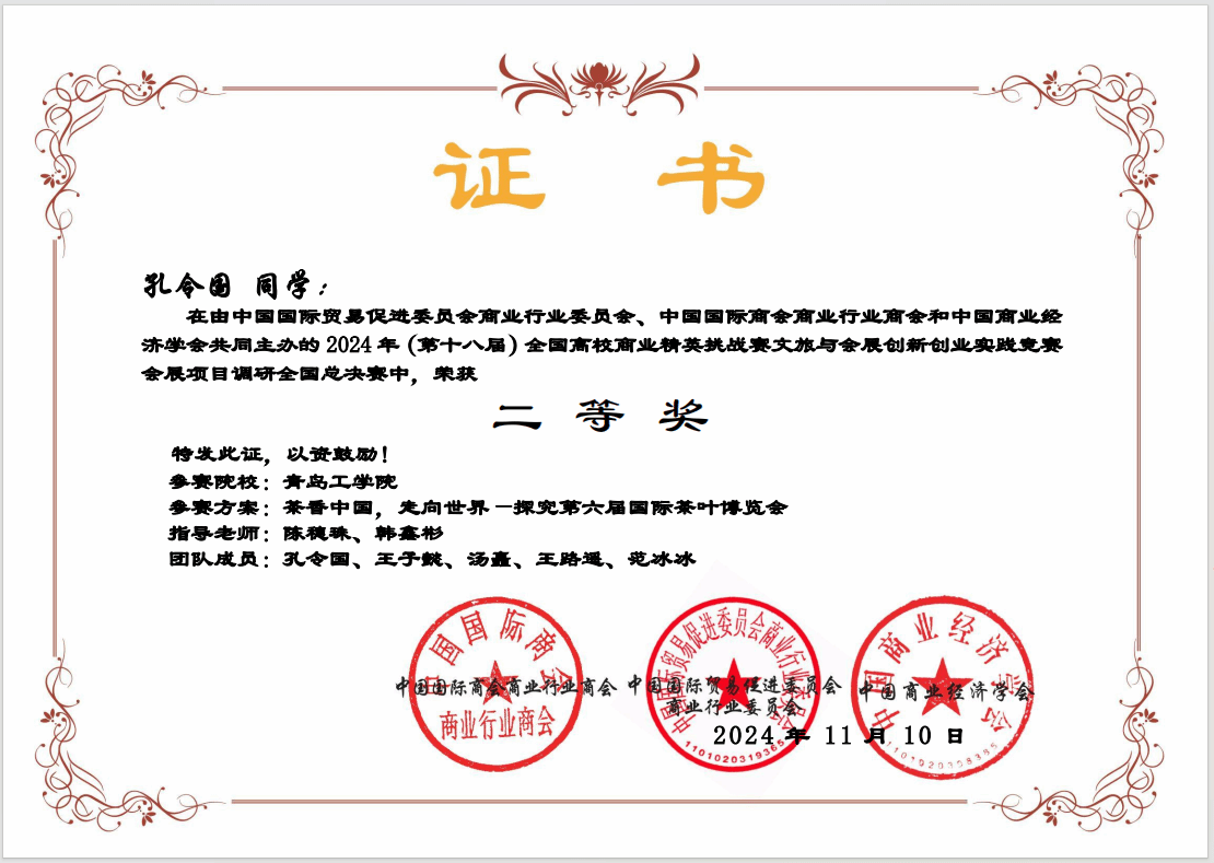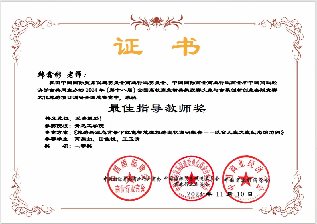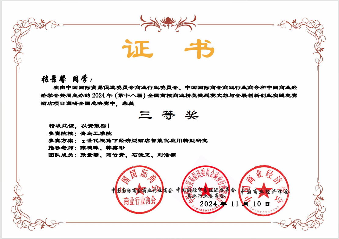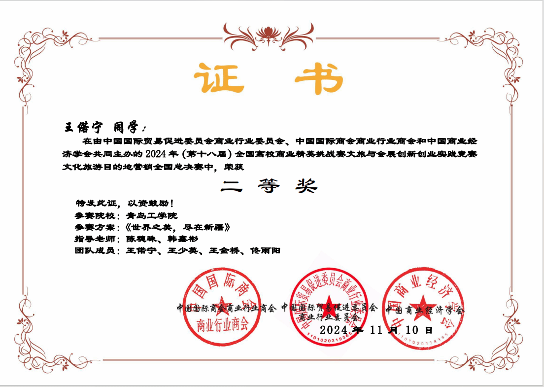 近日,2025年(新加坡)国际商务会展策划大赛中国地区选拔赛暨第十八届全国高校商业精英挑战赛文旅与会展创新创业全国总决赛圆满落幕,公司古天乐代言太阳集团组织的4支员工团队斩获全国总决赛二等奖3项、三等奖1项;教学课程设计教师组2支团队斩获一等奖1项、二等奖1项;古天乐代言太阳集团荣获“最佳院校组织奖”,陈穗珠、韩鑫彬获得最佳指导教师奖。