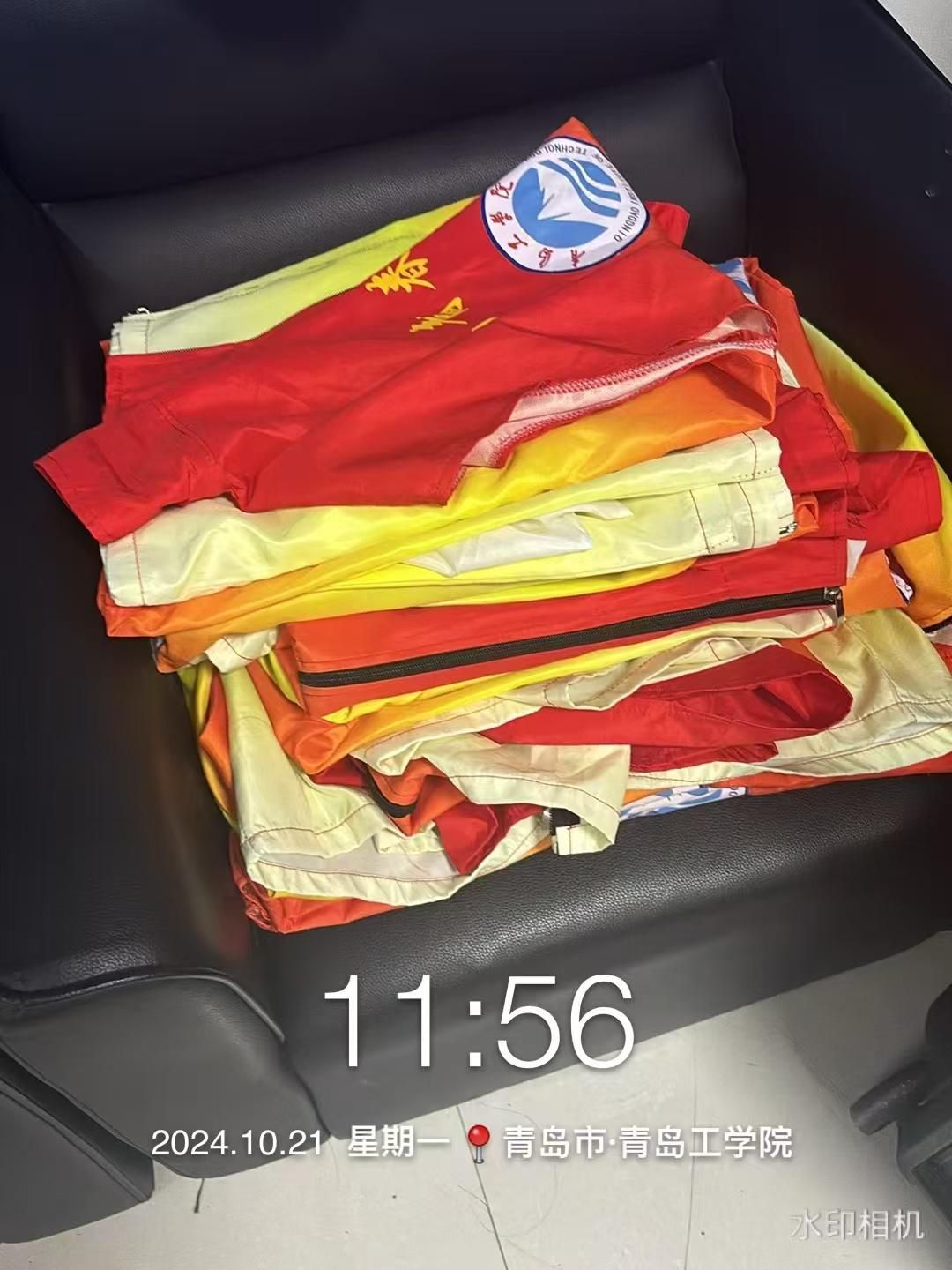 志愿者们将需要清洗的志愿服拿回寝室清洗,晾晒后整齐地叠好并放置起来。