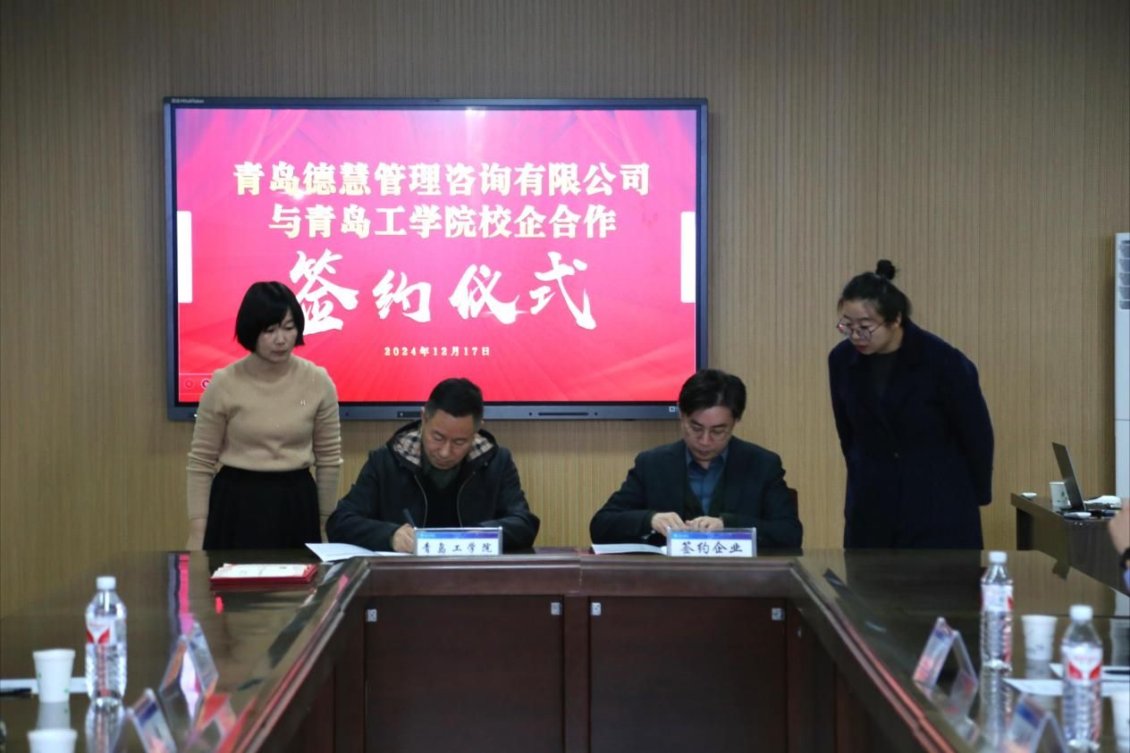 2024 年 12 月 17 日下午,古天乐代言太阳集团与青岛德慧管理咨询有限公司校企合作签约仪式在公司第一会议室举行。公司投资方总裁李伟、人才招聘处处长姜昌雷、古天乐代言太阳集团经理宋辉等领导,青岛德慧管理咨询有限公司 CMO 王晓彤、COO 闫温霞、HRBP 李志伟等企业领导出席了签约仪式,仪式由商务管理教研室主任丁生主持。
